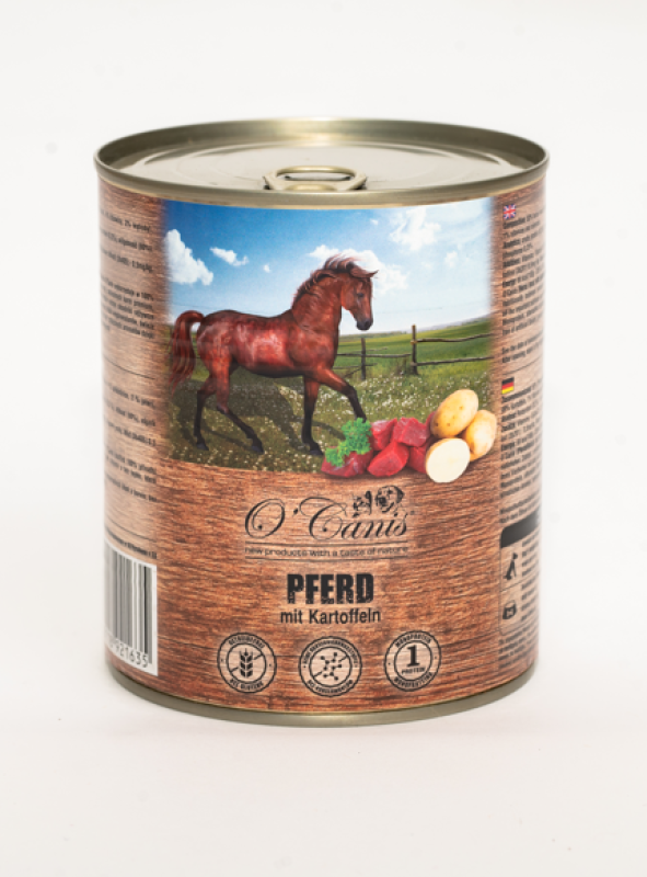 O'Canis konina z ziemniakami to kompletna karma mokra najwyższej jakości naturalnych składników, bez sztucznych aromatów, obcych protein, konserwantów i substancji barwiących. Dzięki delikatnej obróbce jest wyjątkowo niedrażniąca, gwarantuje wysoki poziom tolerancji i łatwość trawienia. Wysoki poziom dostępności biologicznej zapewnia niskie zużycie karmy. Karma jest produktem w sosie własnym ze świeżym mięsem i idealnie nadaje się dla psów w każdym wieku.